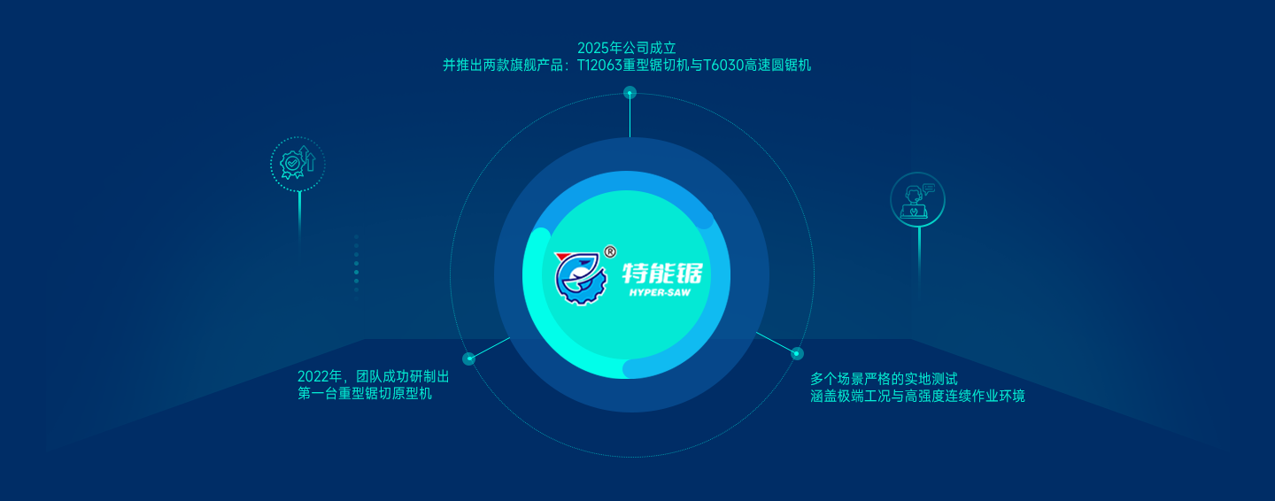 2022年,團隊成功研制出第一臺重型鋸切原型機。該設備在多家合作企業的不同場景中進行了嚴格的實地測試,涵蓋極端工況與高強度連續作業環境,以持續優化性能與可靠性。歷經兩年反復驗證與技術迭代,終于在2025年,常州特能鋸機械科技有限公司正式成立,并推出代表其技術成熟的兩款旗艦產品:T12063重型鋸切機與T6030高速圓鋸機。